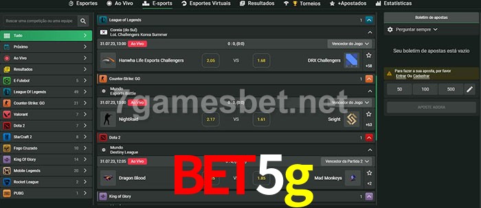 A aposta bet5g oferece aos jogadores a experiência mais conveniente de apostas em eSports!